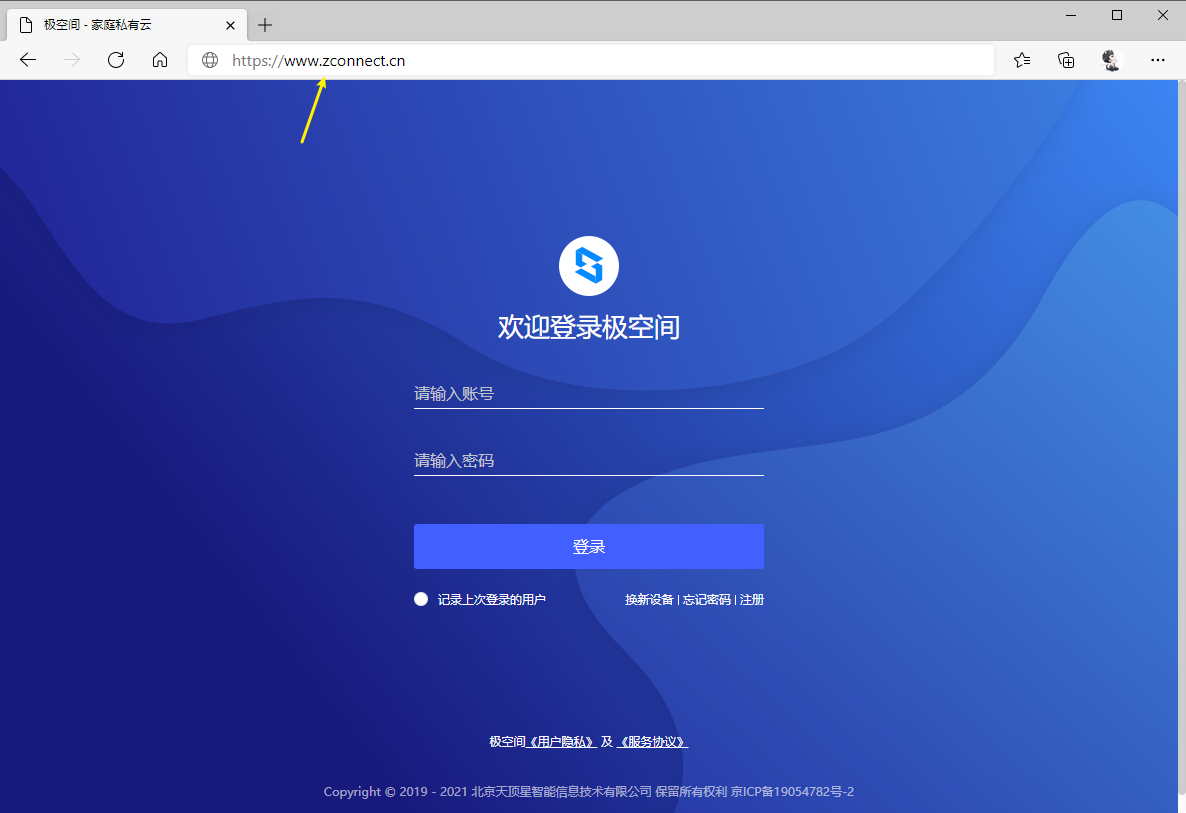 1、我们在电脑的浏览输入,即可进入到极空间的网络访问页面:
