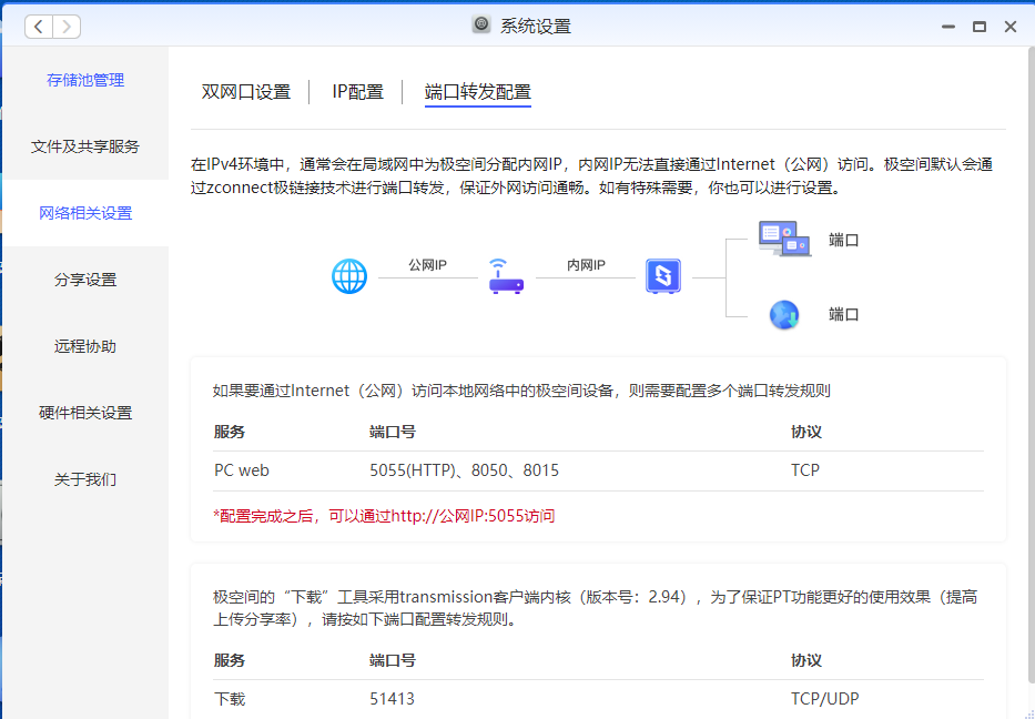 4、在近几天,更新了用户自定义DDNS,可以通过端口转发,实现公网ip+端口的方式访问极空间: