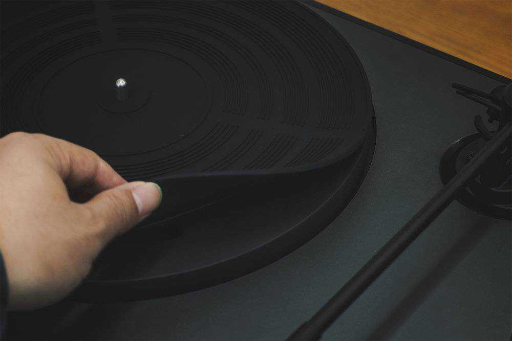 唱片垫是很多人容易忽略的地方,一些选择疏忽甚至会影响声音表现。之前老黑胶机用的唱片防滑垫是羊毛垫,不太容易清理,而HYM-RAYS这边触感上应该是硅胶垫,防静电的同时也易于打理,也有一定程度的减震效果。