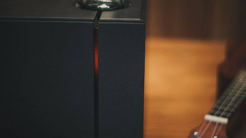正面扬声器区域在视觉上的最大亮点就是右侧的的灯槽设计,将电子管钨丝灯原始温暖的光源完整露出,让正面视觉上不再沉闷,也给屋内多添了一份温暖。而且这总功率80W扬声器也大有乾坤,内置两个低音Φ4寸,4Ω,25W,为防弹布复合盆材质;两个高音Φ1寸,8Ω,15W,蚕丝振膜材质。这部分的堆料可以说很有诚意。