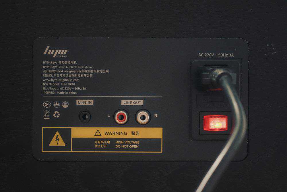 为了更好的播放表现,除了依靠17kg的自重来稳定80W功率的扬声器,在唱盘下面采用了三点悬吊避震。有效解决了播放过程中各种音频带来的震动影响。当然我上面的GIF图里震动演示的有些夸张了,主要为了说明它的避震设计的灵活,现实场景完全没有这么大的幅度。其实黑胶一体机正规军里也都会有采用避震设计,但就我用过的几款里面,没有一台能有HYM-RAYS的避震效果。如果其它几台是减震较硬的普通汽车,那它就是堪比豪车级别的舒适减震体验。