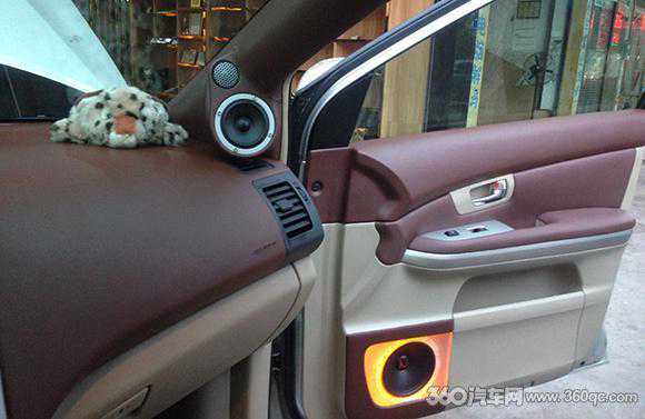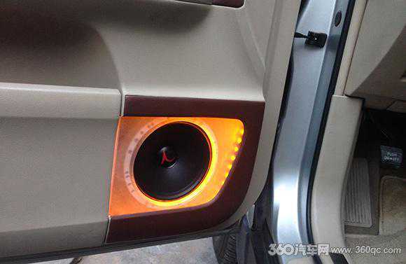 配合最好听感,中低音喇叭在门板安装就有所讲究。原门板喇叭位已经无法满足喇叭的发挥,于是团队在门板位置换上倒模的木箱和专用木垫圈来保护中低音单元,也让喇叭的声音发挥更出色。整体配合木箱体造型,门板原内饰也作出修改,采用整体配合前声场的真皮箱体互相呼应,再加上灯光效果陪衬,观感和听感同样满足。