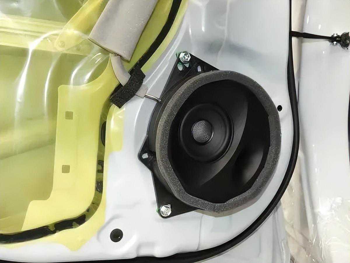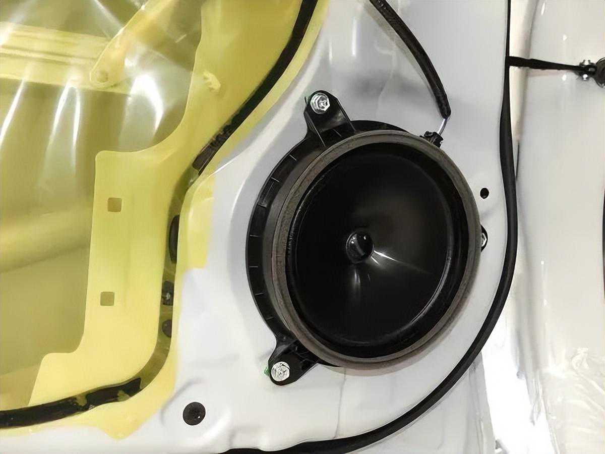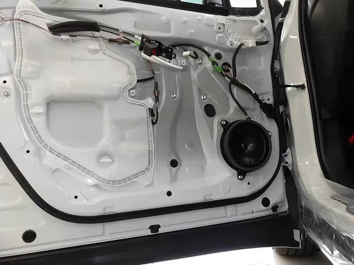 首先,改装技师先拆下前门内饰板,看到原车喇叭,其品相一眼就看得出不是佳品,难怪声音品质欠佳。