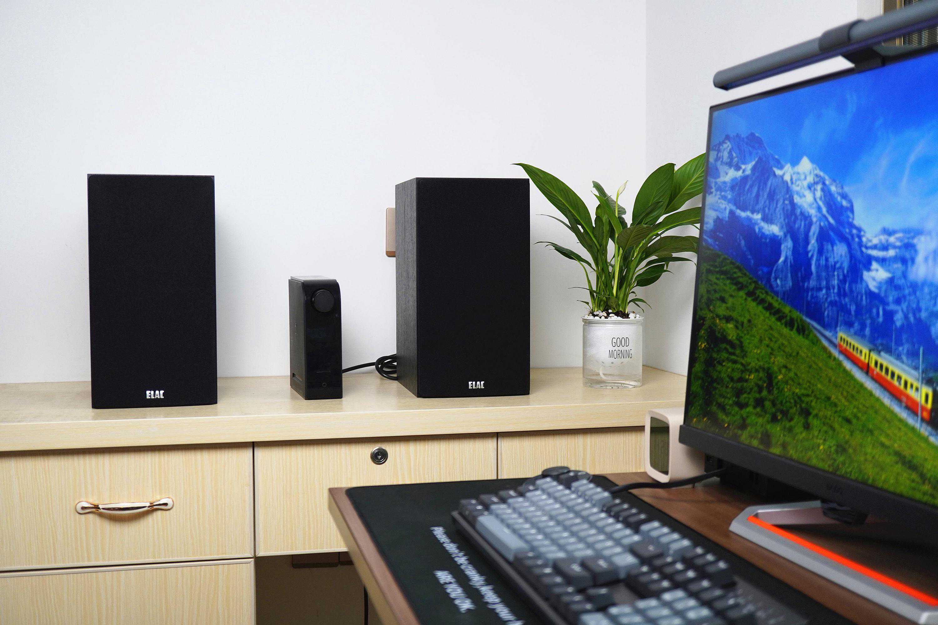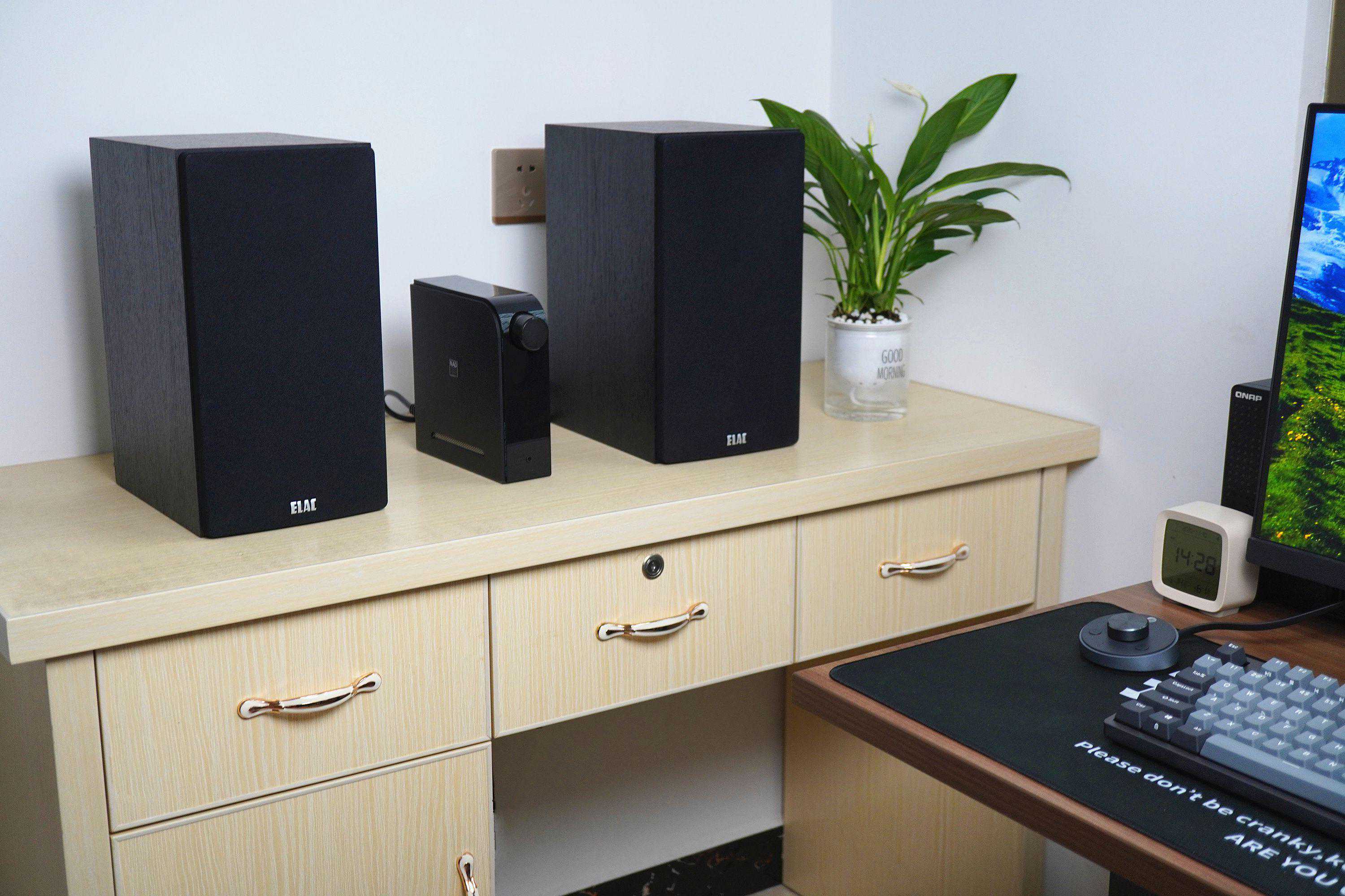 ▲比如之前添置的一套ELACDB52音箱+NADD3020功放桌面音响系统。因为场地不受限制嘛所以就单独挪出一张桌子来摆,平时在另一边的电脑前挥洒青春时,迎面就能迎接或动次打次,或婉转低回的音乐洗礼。