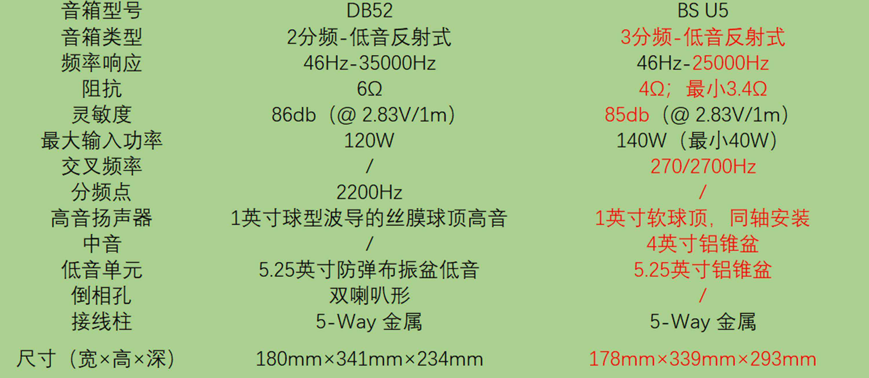 ▼我们来看一下BSU5和DB52的具体参数对比: