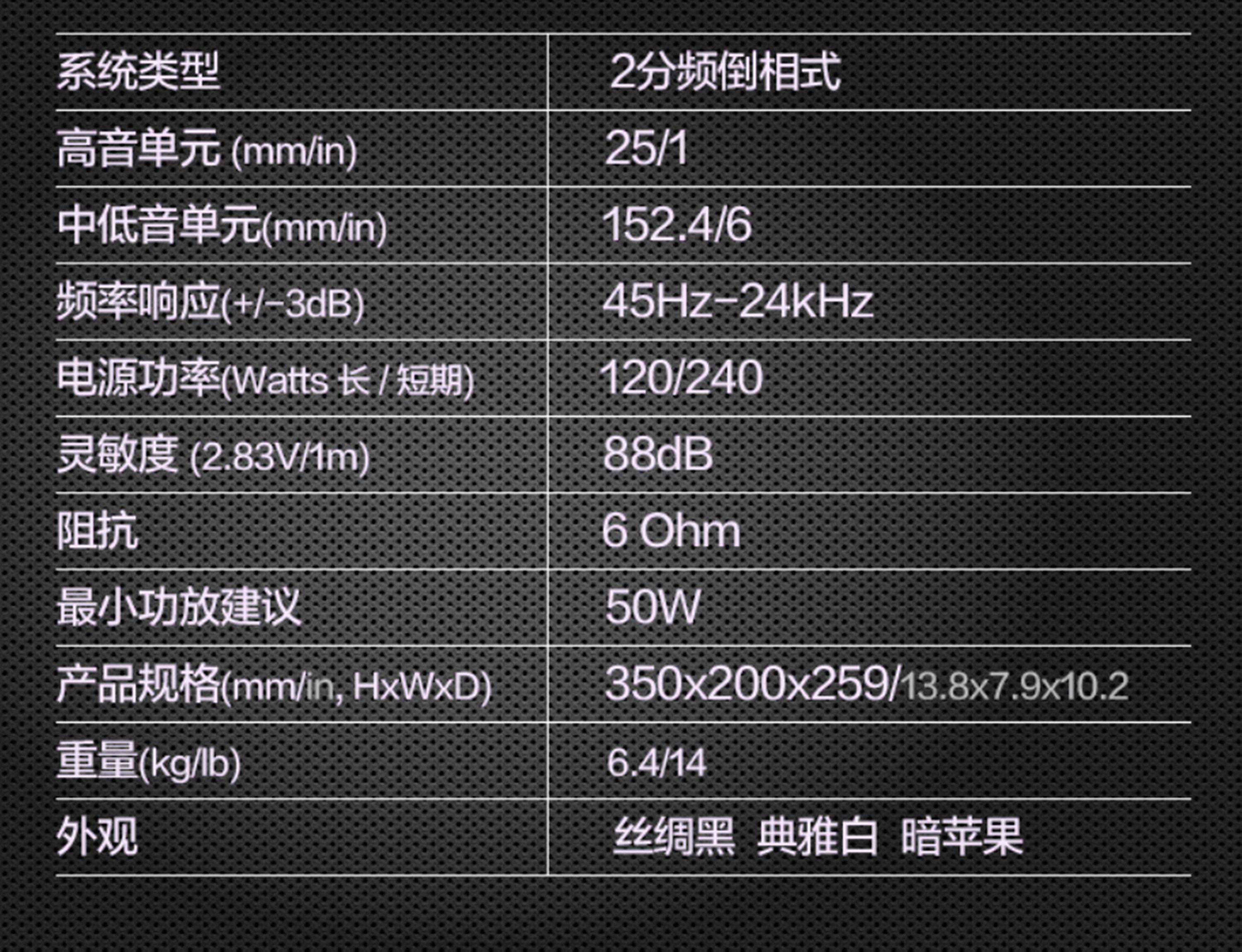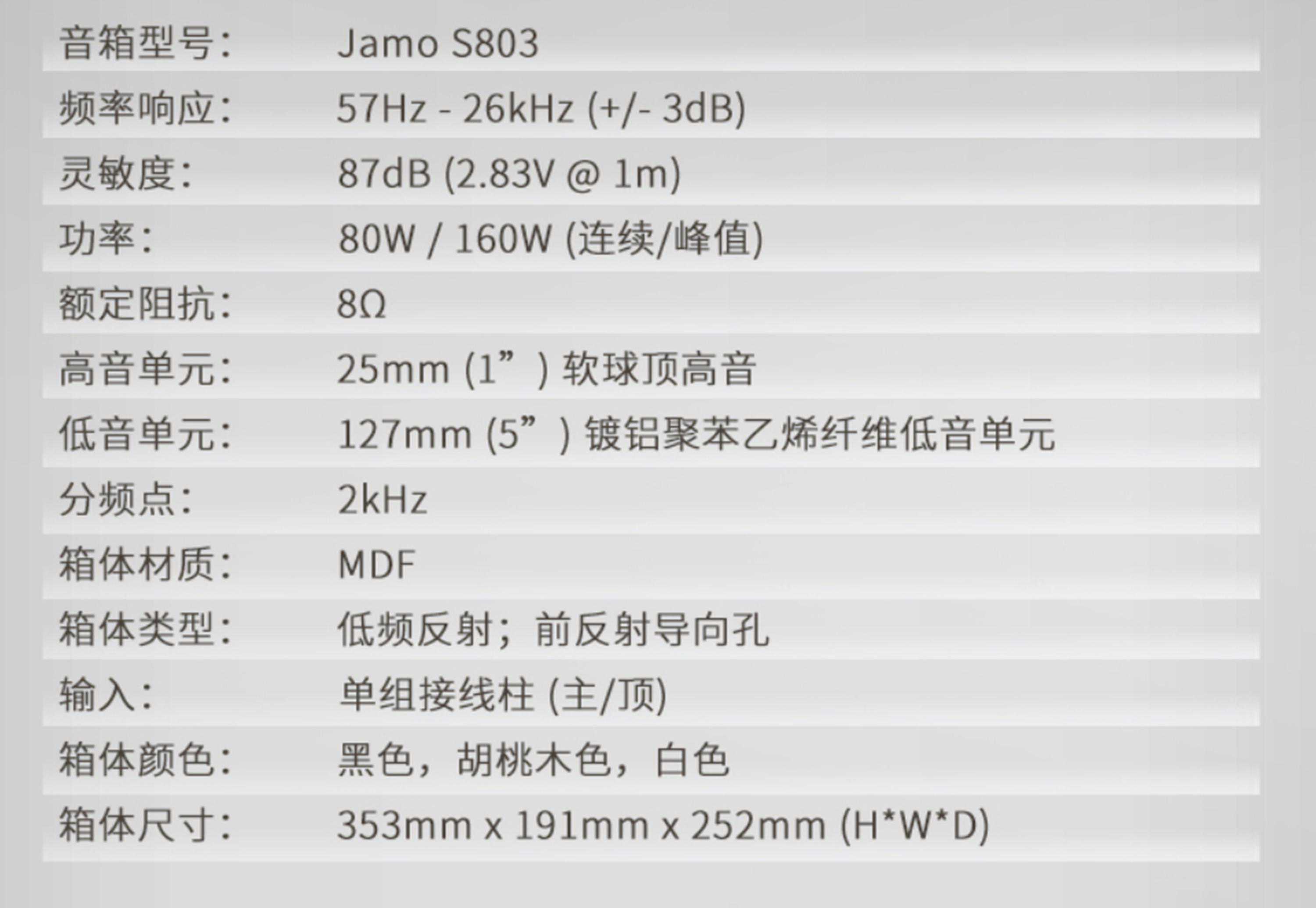 ▲尊宝S803的详细参数,分频点略早于意力DB52,功率也更高,频响范围倒是跟意力BSU5相当(当然,下潜不如BSU5深就是)。