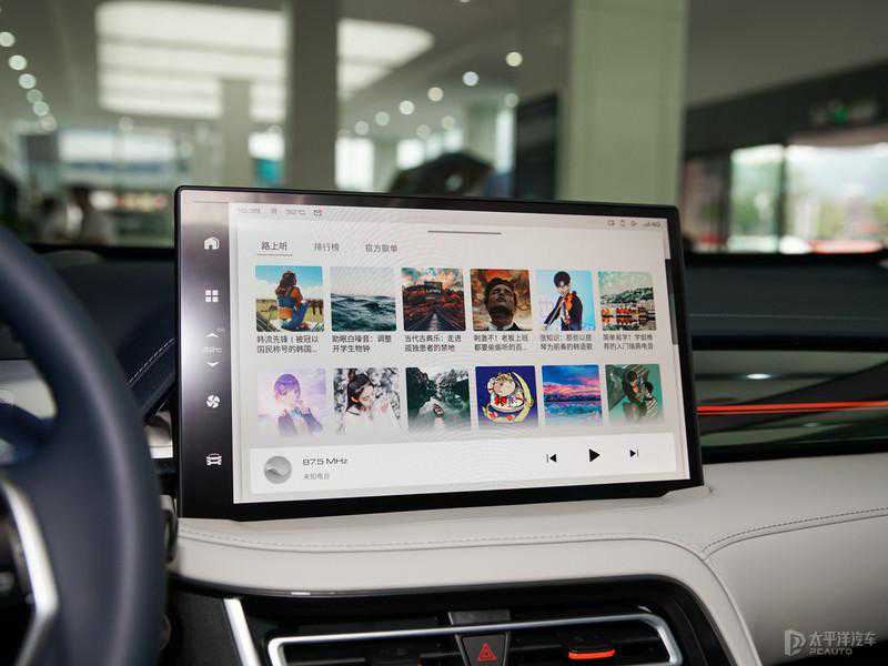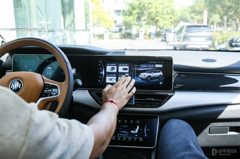 进入车内,中控屏更大更宽了,把之前两个空调出风口“挤”到了屏幕下方,原本在屏幕下方的一组按键被融入触碰控制里面。