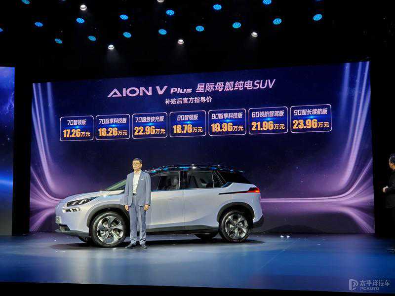 广汽埃安AIONVPlus官方指导售价车型售价(万元)70智领版17.2670智享科技版18.2670超级快充版22.9680智领版18.7680智享科技版19.9680领航智驾版21.9690超长续航版23.96