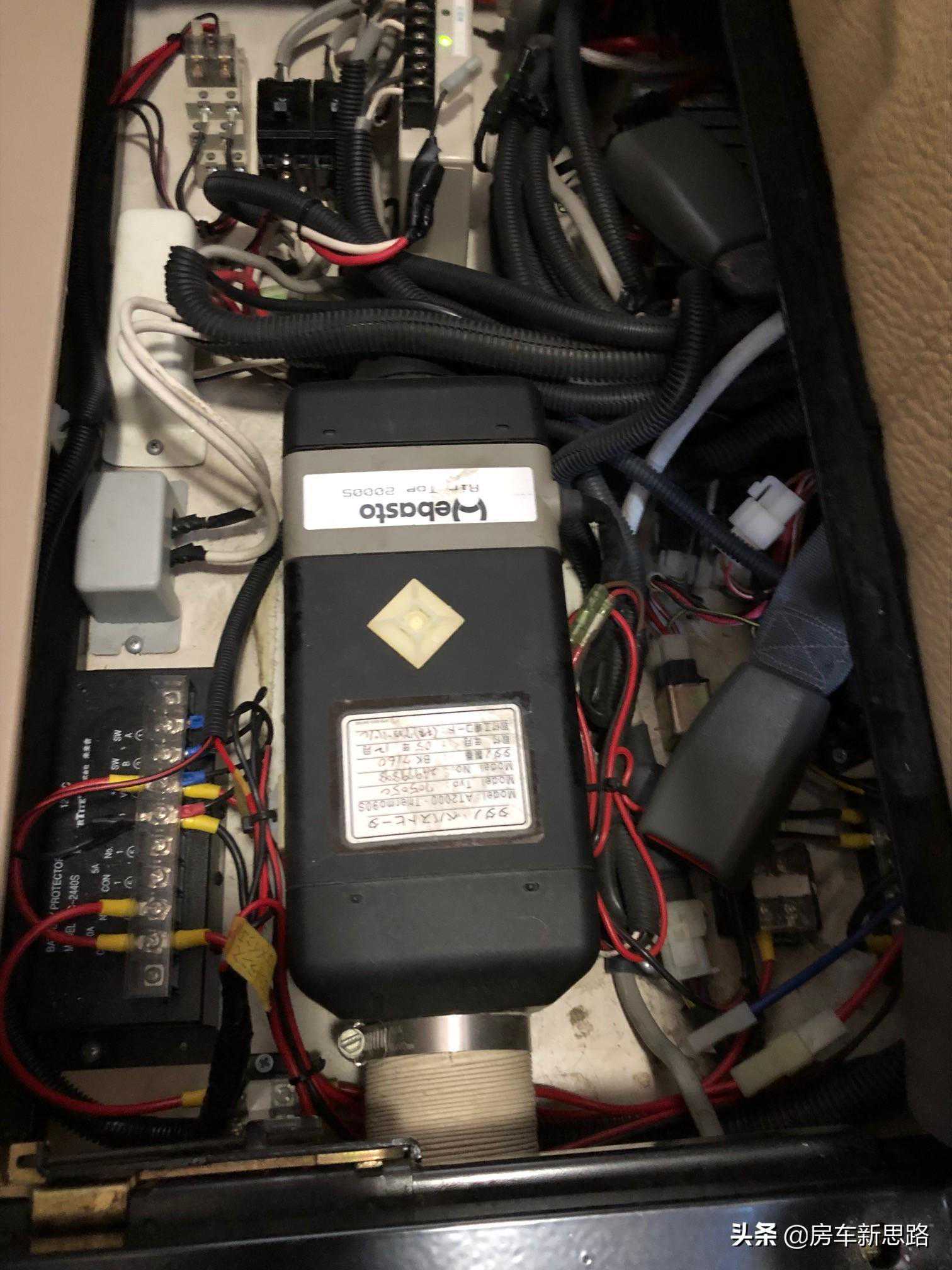 此为房车线路,对从左边伸过来的米色粗的框架,支持吊床的斜臂是可动的,线路处理为了不给电缆增加负担而大幅度转动处理。