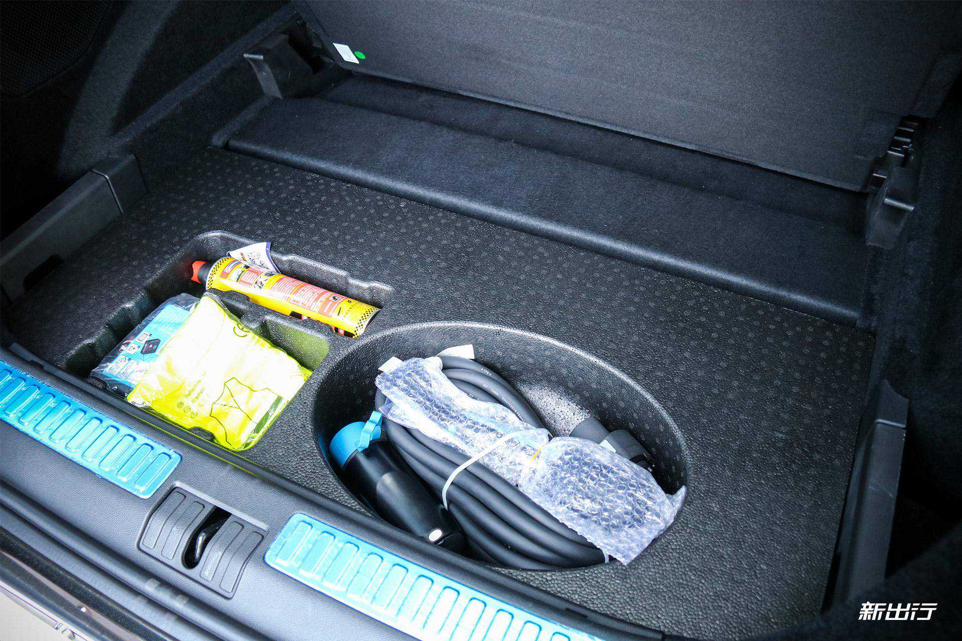 盖板打开下方则是充气泵、随车充等应急物品。