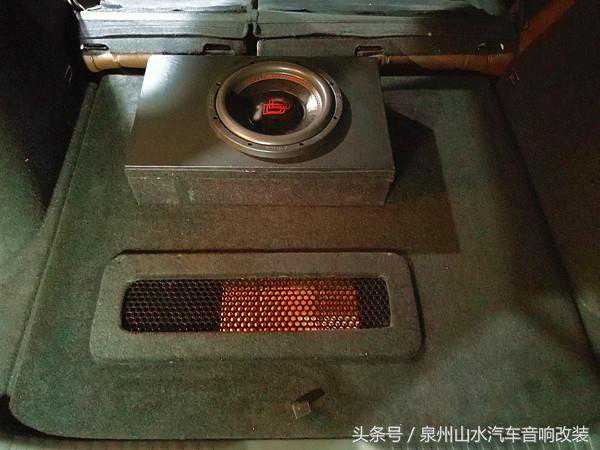 泉州山水汽车音响改装独特的尾箱设计工艺,深受众多车友的喜爱,大大的节省了空间,又不影响后箱的使用功能
