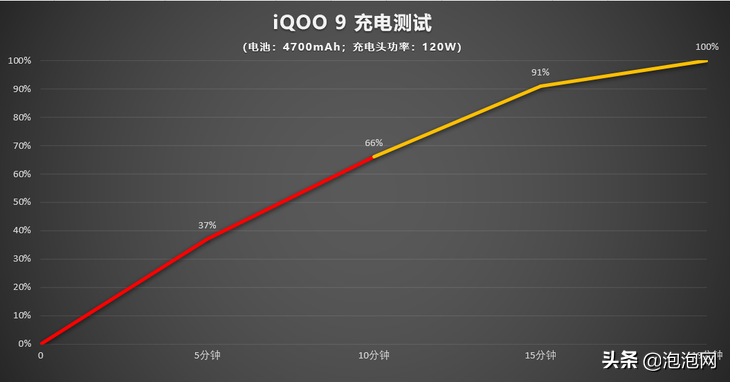 iQOO9这次依旧是全系标配了目前行业最顶级的120W超级闪充,同时在机身较上代稍有减薄的情况下,将电池容量从原来的4350mAh增加到了4700mAh,可以说非常不容易。这次iQOO9还配备了体积更小的氮化镓充电头,实测下来10分钟充电66%,完整充满仅耗时18分钟,增加容量的同时速度丝毫不减,妥妥的行业第一梯队水准。