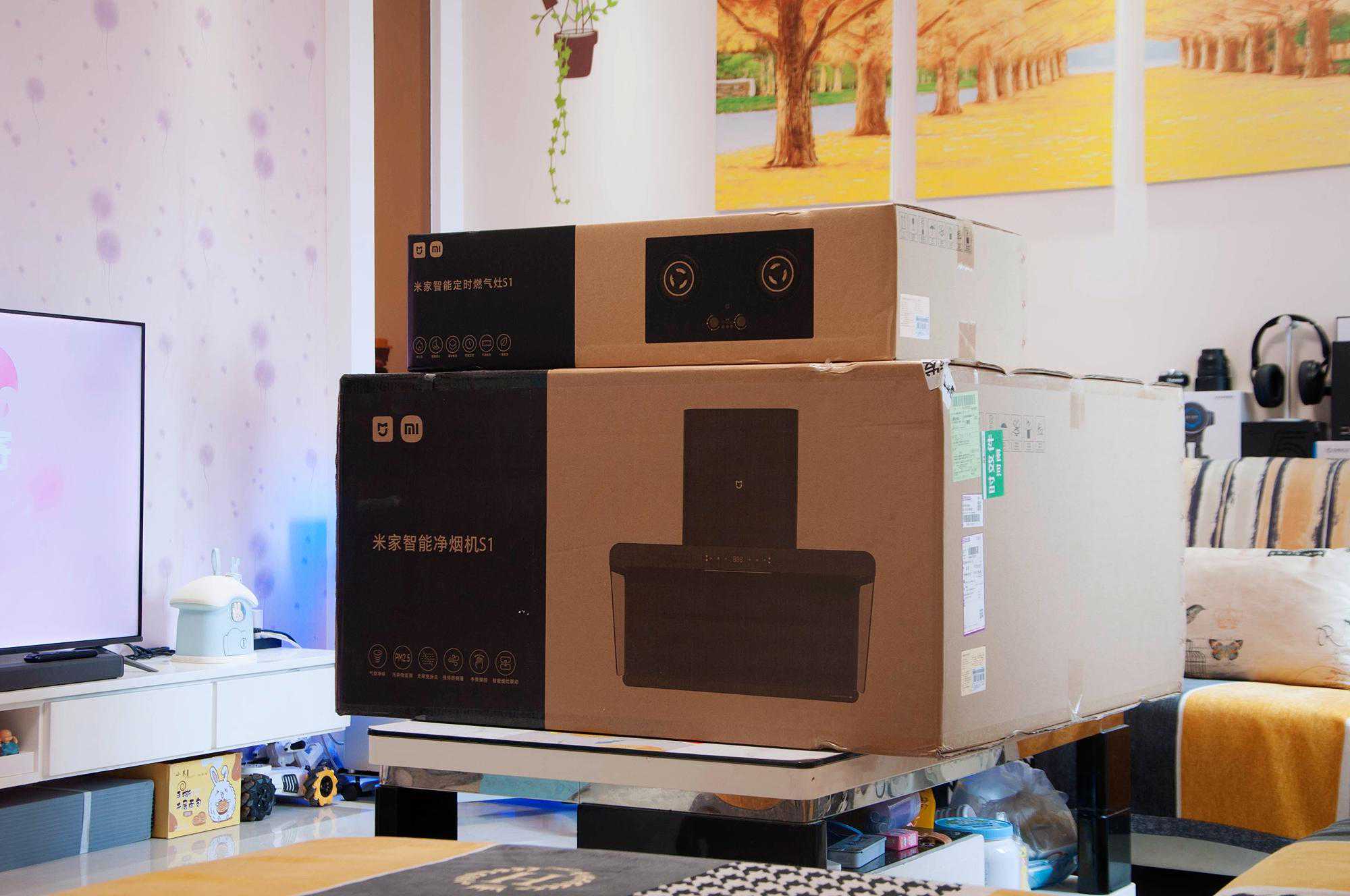 米家智能净烟机S1烟灶套装包含米家智能净烟机S1和米家智能定时燃气灶S1两款产品,顺丰配送,两位小哥直接帮我抬到家了,太感谢了!包装风格采用了米家的极简设计,箱体印有产品名称+卖点+轮廓图等信息,内部都有泡沫护板+防尘袋保护,足以保障产品在运输中的安全性。