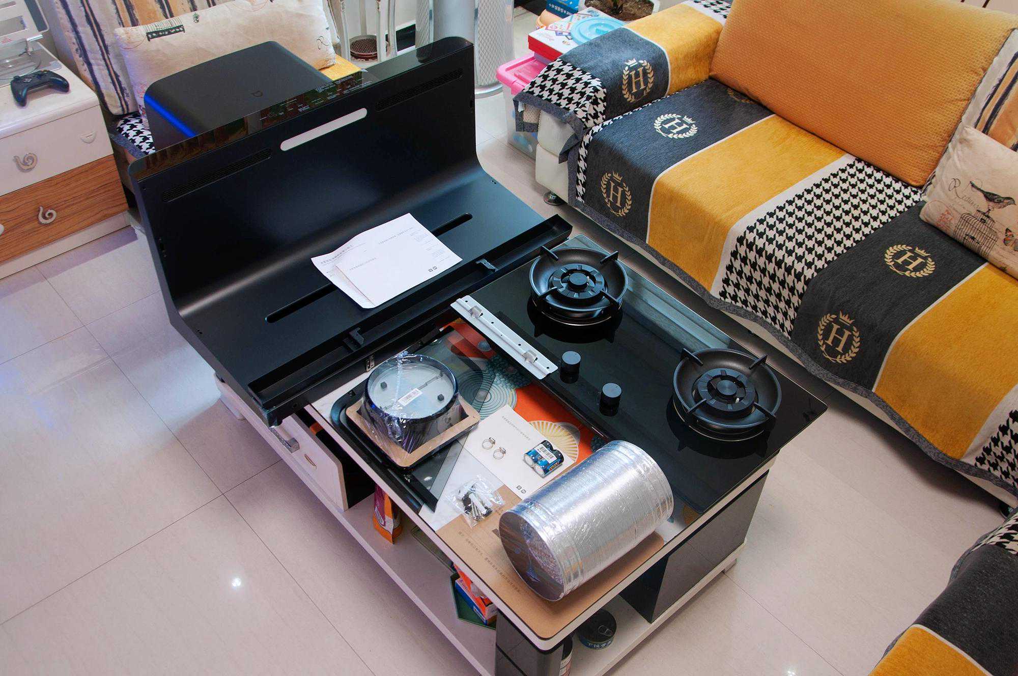 为了测试吸油烟效果,我特意买了烟饼,点燃后放在其中一个灶位上,可以看到高档模式下拢烟排烟效果还是非常给力的。