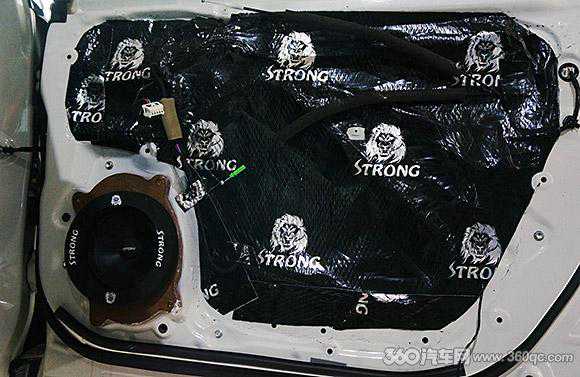 负责这辆白色个性SUV改装的是帝锐汽车音响的专业团队,隔音升级的主力区域前后门板选用非常顶级的狮龙隔音产品。前后四门狮龙环保隔音满铺,双层隔音抑制钣金共振和金属震动,也把车厢隔绝形成真空区域,车厢内更安静舒适。SUV两厢式车身在行李箱位置容易造成空洞,隔音容易忽略这个位置。帝锐团队用上狮龙顶级吸音棉布置在行李箱,吸引有效控制回响和空洞噪音,听音空间更为结实。