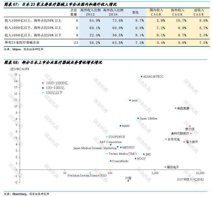 正如前文分析,对日本来说,国内制造成本高昂,政策和医保对医疗器械国产化缺乏热情;而国内市场空间和增速也有限,对于企业来说,最大的发展机遇是在某个领域打造较强竞争力后进军国际市场;