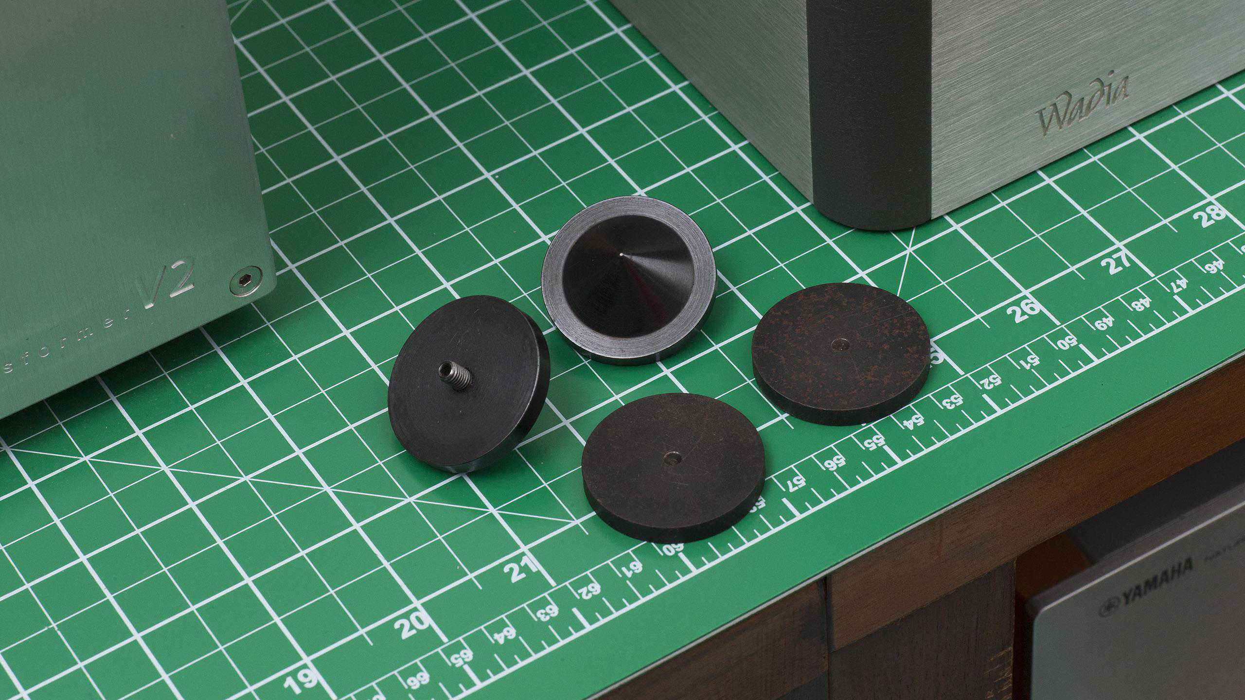 由于Wadia381非常的重,而且可调整脚钉相当锐利,因此需要使用脚垫来保护器材架不被刮伤。值得一提的是Wadia381表面看不到一颗螺丝,因为它很巧妙地隐藏了起来。