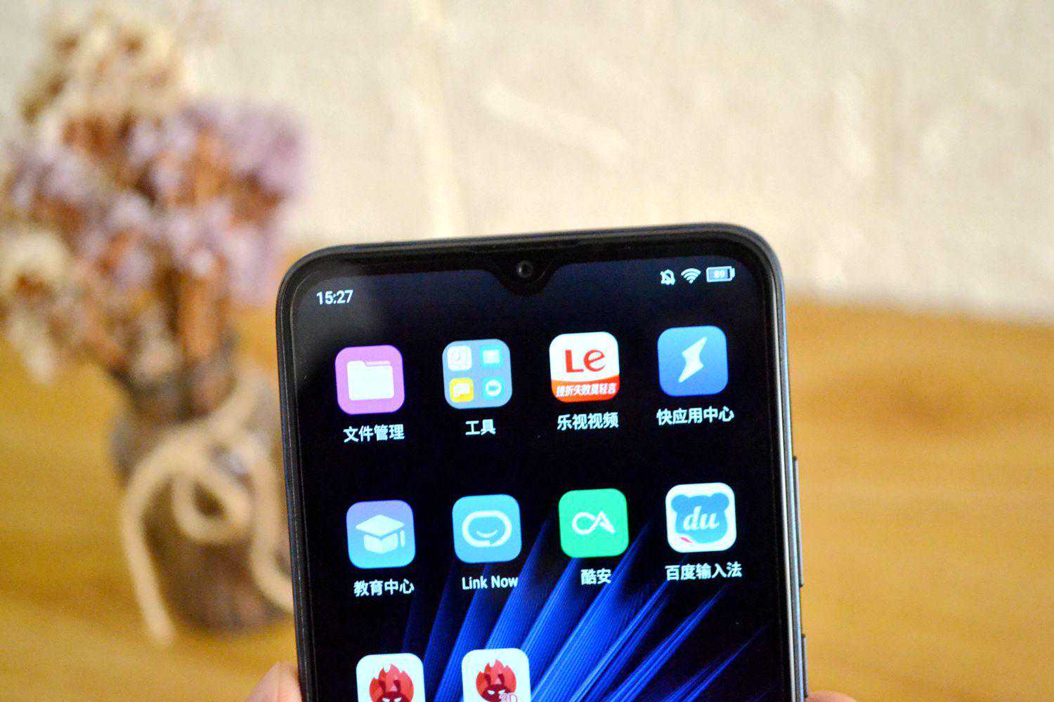 屏幕方面,正面采用了一块6.53英寸的LCD的屏幕,全面屏采用的是水滴屏的设计方案,分辨率为720P。底边黑边相对旗舰机来说还是蛮宽的,屏占比一般,符合中端机的水准。