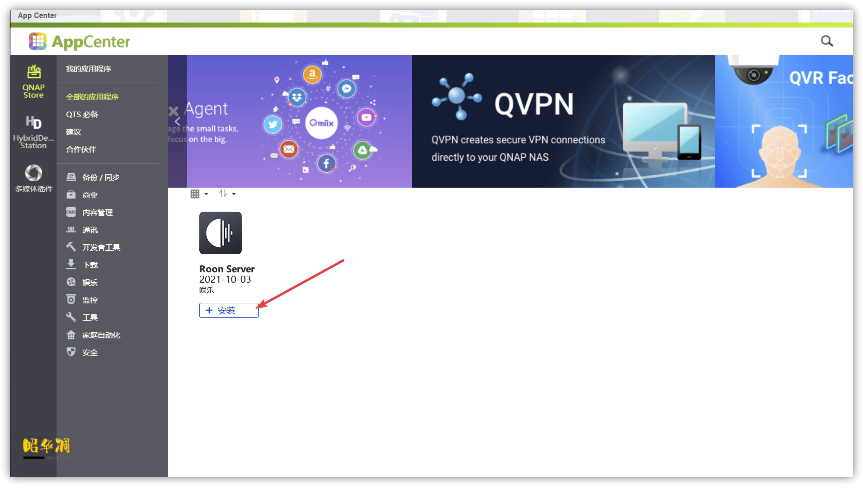 ▼在威联通QTS系统的应用商店找到RoonServer应用,直接安装