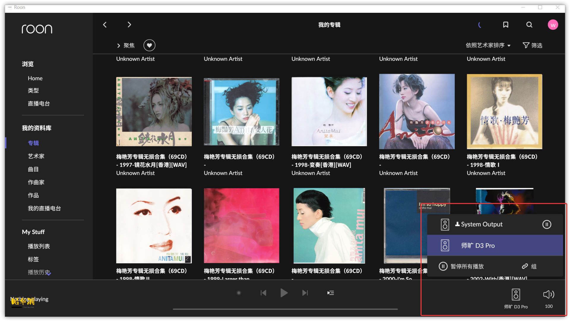 roon在扫描完音频文件后会自动将低音质音频采样率提升至44.1kHz(准CD格式),同时会与服务器进行对比,补充曲目相关资料并生成响应的资料库。