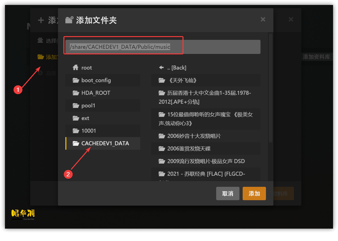 ▼添加文件夹,也就是NAS上储存音乐文件夹