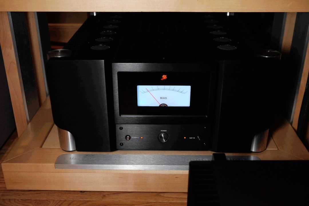 话题回到全新的PSM-300T身上,如同重装甲般的机身依然是声雅的大厂风范,4条亮光的金属支柱依然是声雅高端系列的一贯传统,显得稳重大方。单声道全平衡放大线路设计,厚重的复合面板上的指示表并非输出功率指示,厂方说那晃动的指针并没有多少实用的意义,而是设为工作状态指示表,供用家清晰观察到机器处在甲类或是甲乙类的运行状态。而显示屏下方的操控面板上分别有甲类/甲乙类切换和XLR/RCA输入端子选择。PSM-300T的突破之处,在于音频信号输入采用了6N16电子管与晶体管混合的差分电压放大线路,再以晶体管做第二级的再差分电压放大,因此音质表现有别于声雅以往的产品。