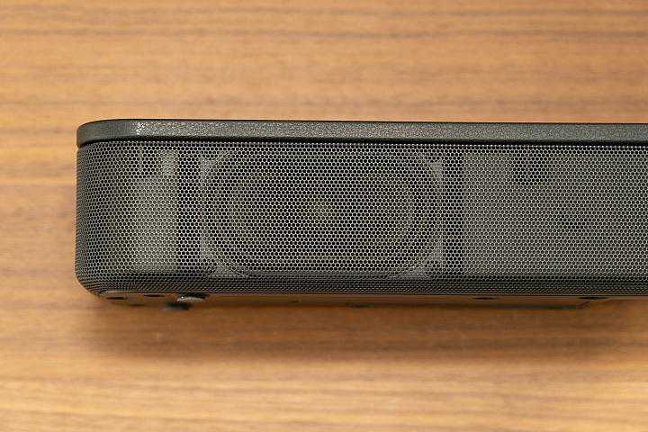 Soundbar前方的金属网格是无法拆卸的设计,内建左右两个喇叭单体,单体尺寸为52X90mm,为全音域喇叭单体的配置。
