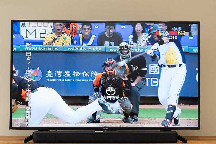 首先小编先用MOD的节目内容来体验一下运动声音模式,在标准声音模式下,球赛的播报声音与球场环境声的分离感没有那么强,不过切换至运动声音模式后,球场现场的加油声与击球声就会变得比较立体,球赛主播播报的声音也显得比较前靠,彷佛就在你身边播报一样,如果想要增加赛事的临场感,遥控器上的SW效果往上加就会更加明显。