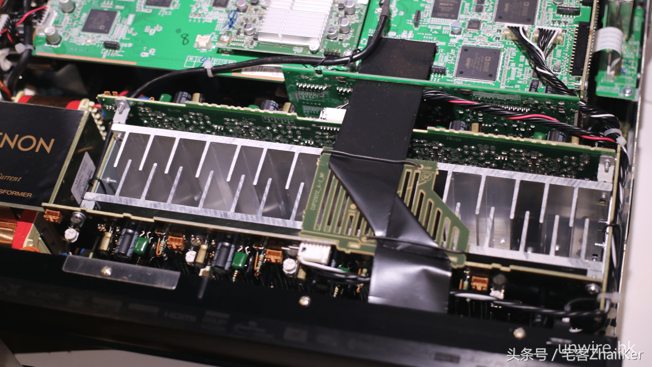 ▲继续设有9组扩音线路,分置于两块线路板,上方为5声道下方则为4声道,以减少相互干扰。