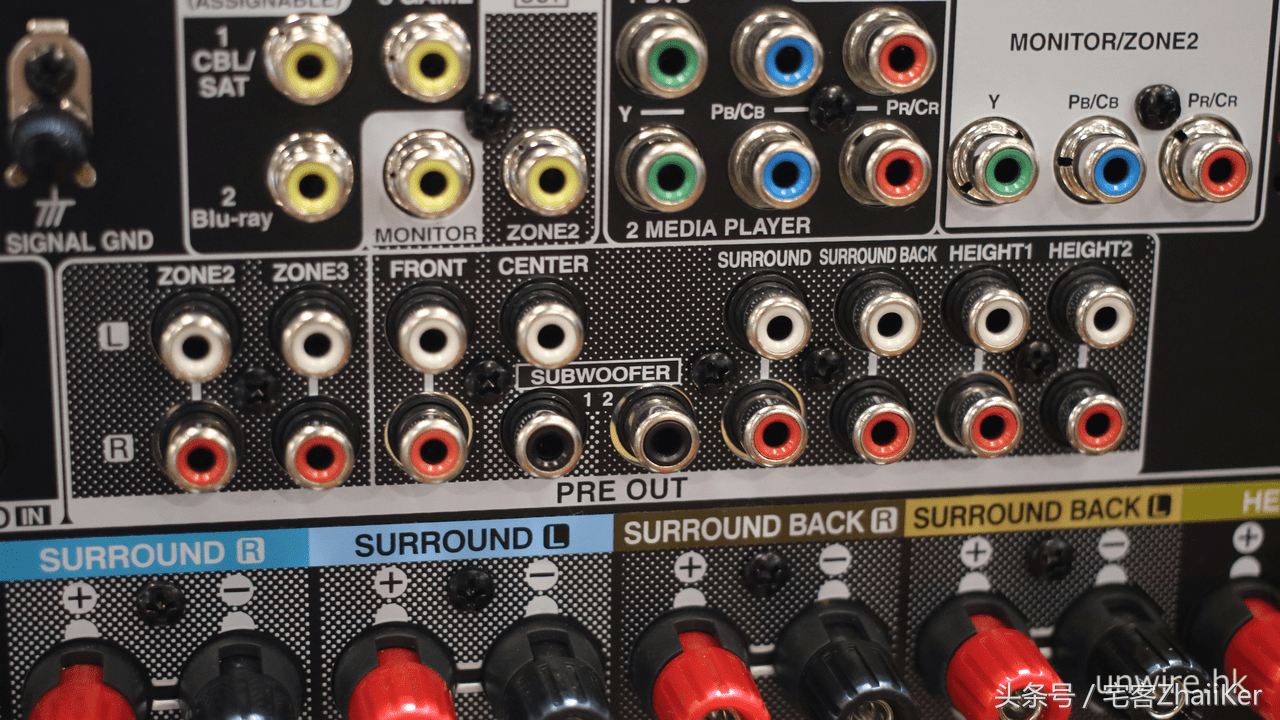 ▲PreOut输出11.2声道,可充当纯前级功放使用。