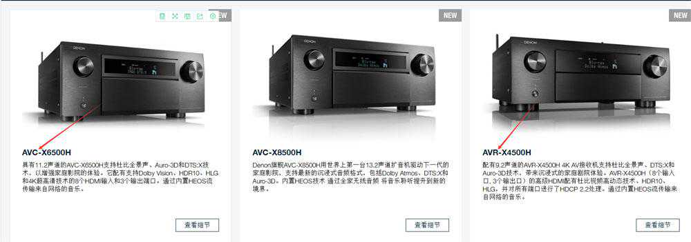 天龙AVC-X6500H是日本原产,而AVR-X4500H产地的越南。