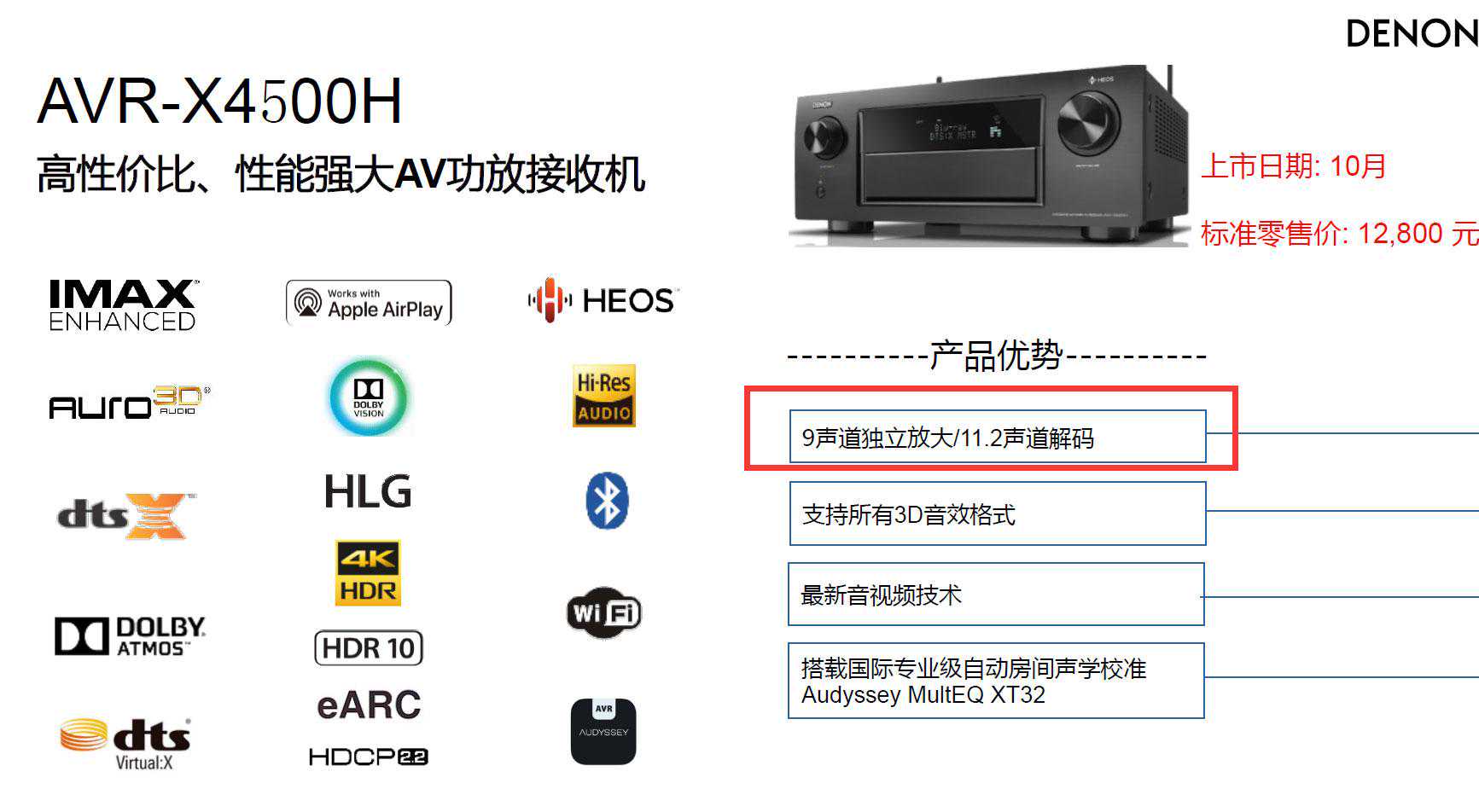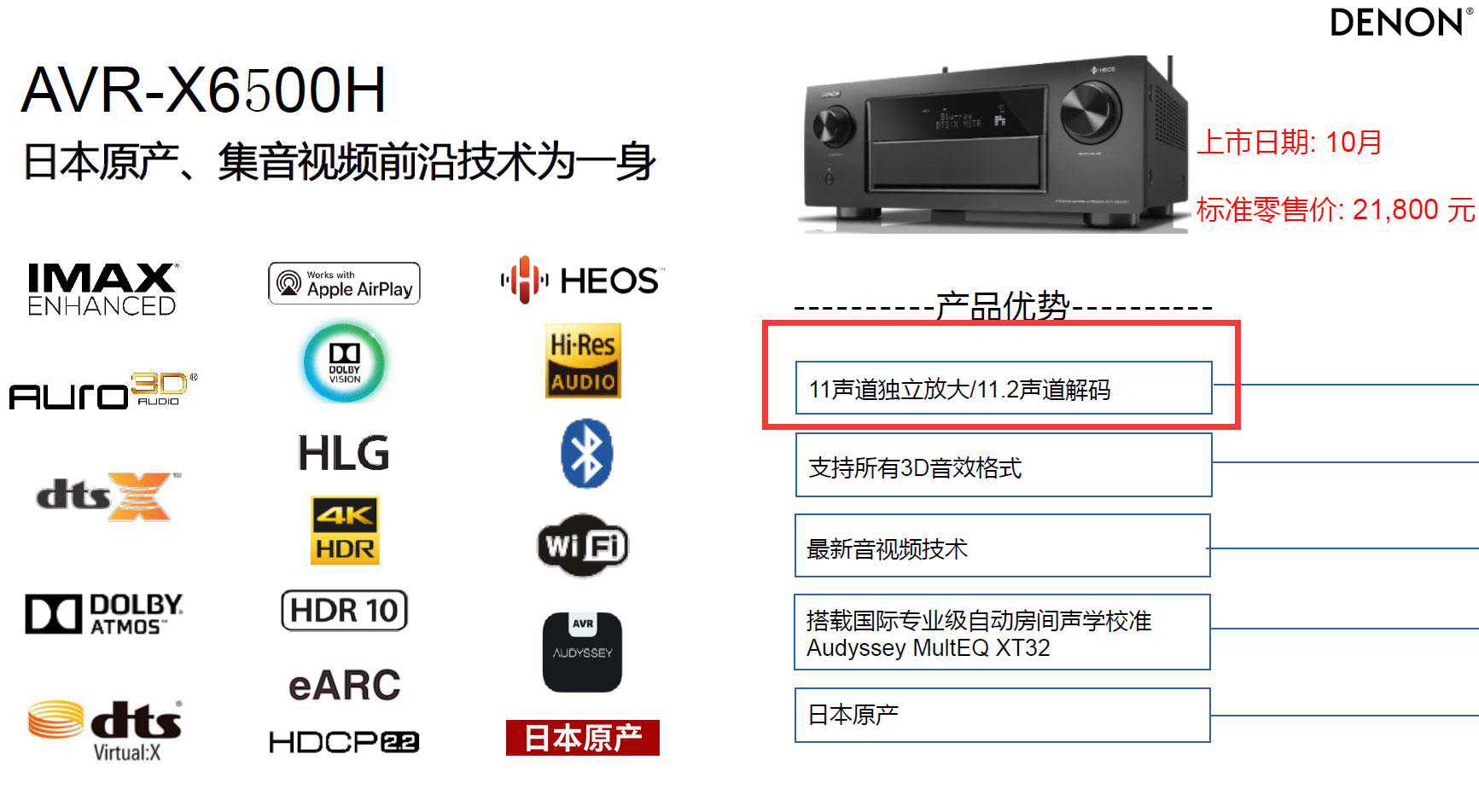 而如果从价格和今年经销商大会的官方介绍上来看,天龙AVC-X6500H那21800元的价格,确实比AVR-X4500H12800元的价格贵了9000元。