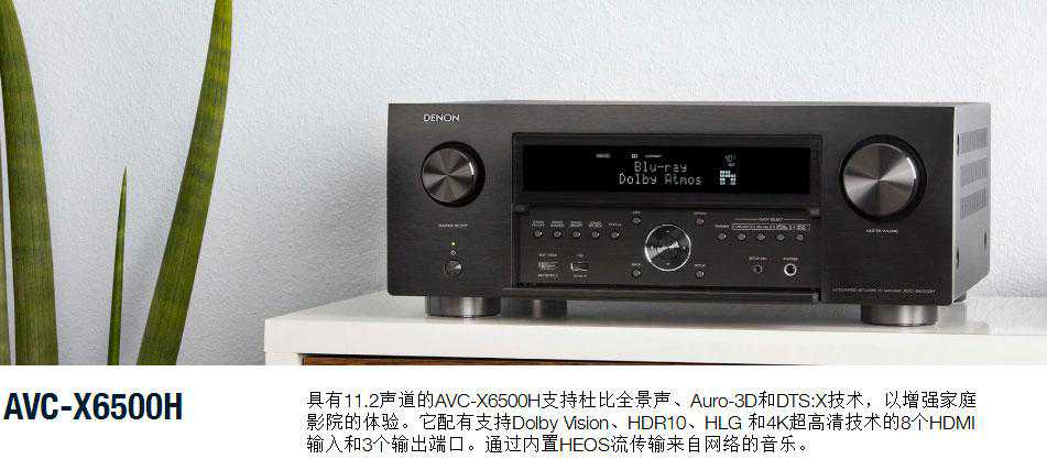 AVC-X6500H的卖点在于内置11声道放大器,不用外接后级放大器,就可以直推7.1.4的家庭影院。