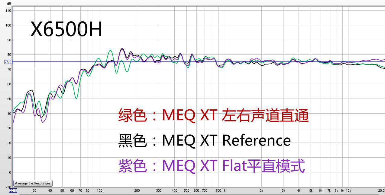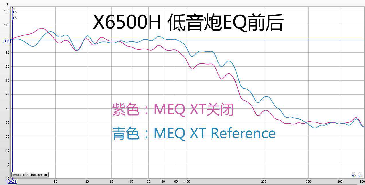 基本上X4500H的自动调试及EQ之后,右声道平均参考声压是在75dB,而低音炮高10dB左右,在85dB。