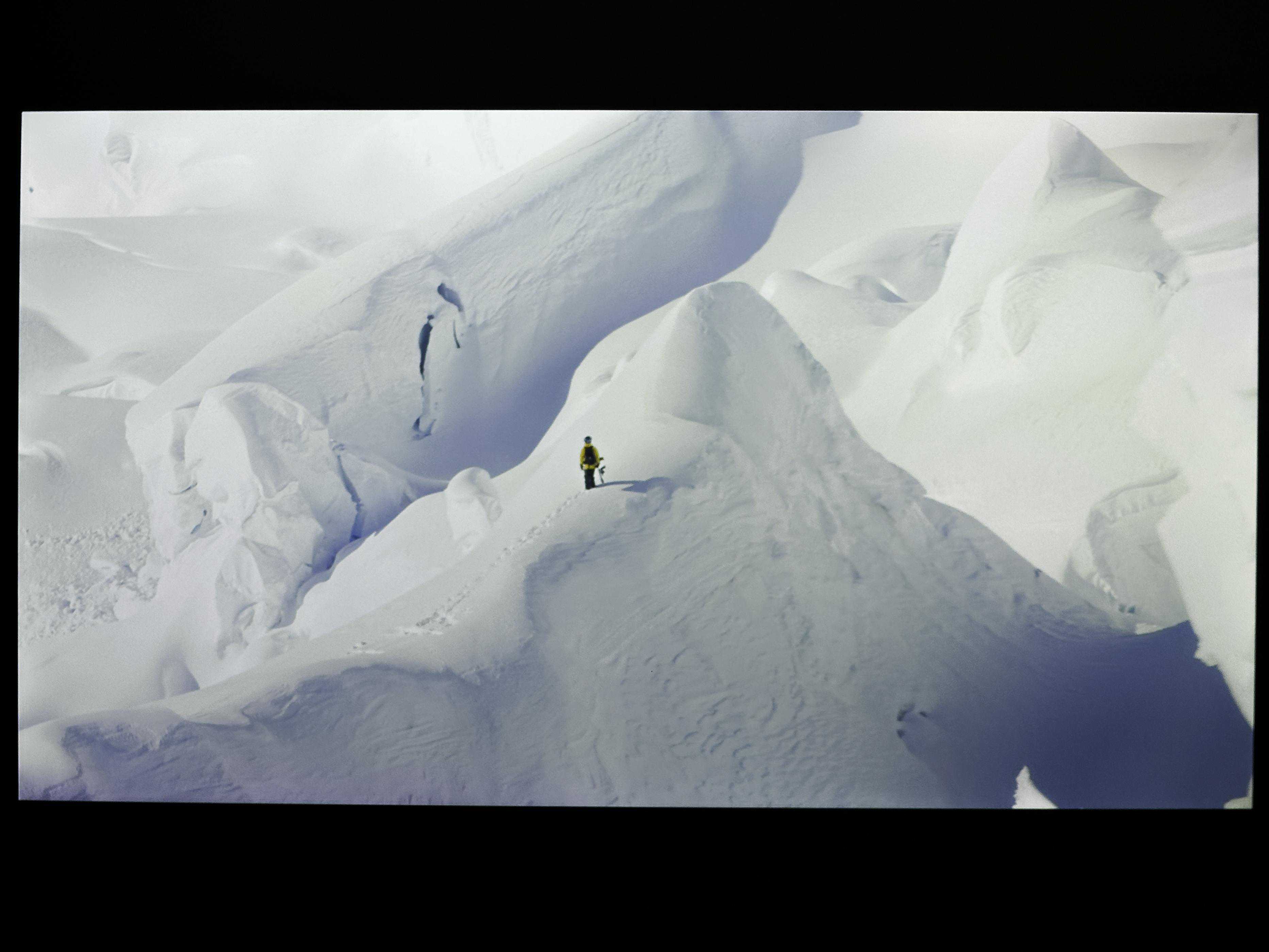 这个是高饱和度,高曝光的雪地场景,得益于这台投影的高亮度,可以看到左上角十分明亮。而左下角则是深色,这个在这张画面中,明暗对比强烈,细节显示得很完整,整个画面很细腻,实际用眼睛看是很舒服的。