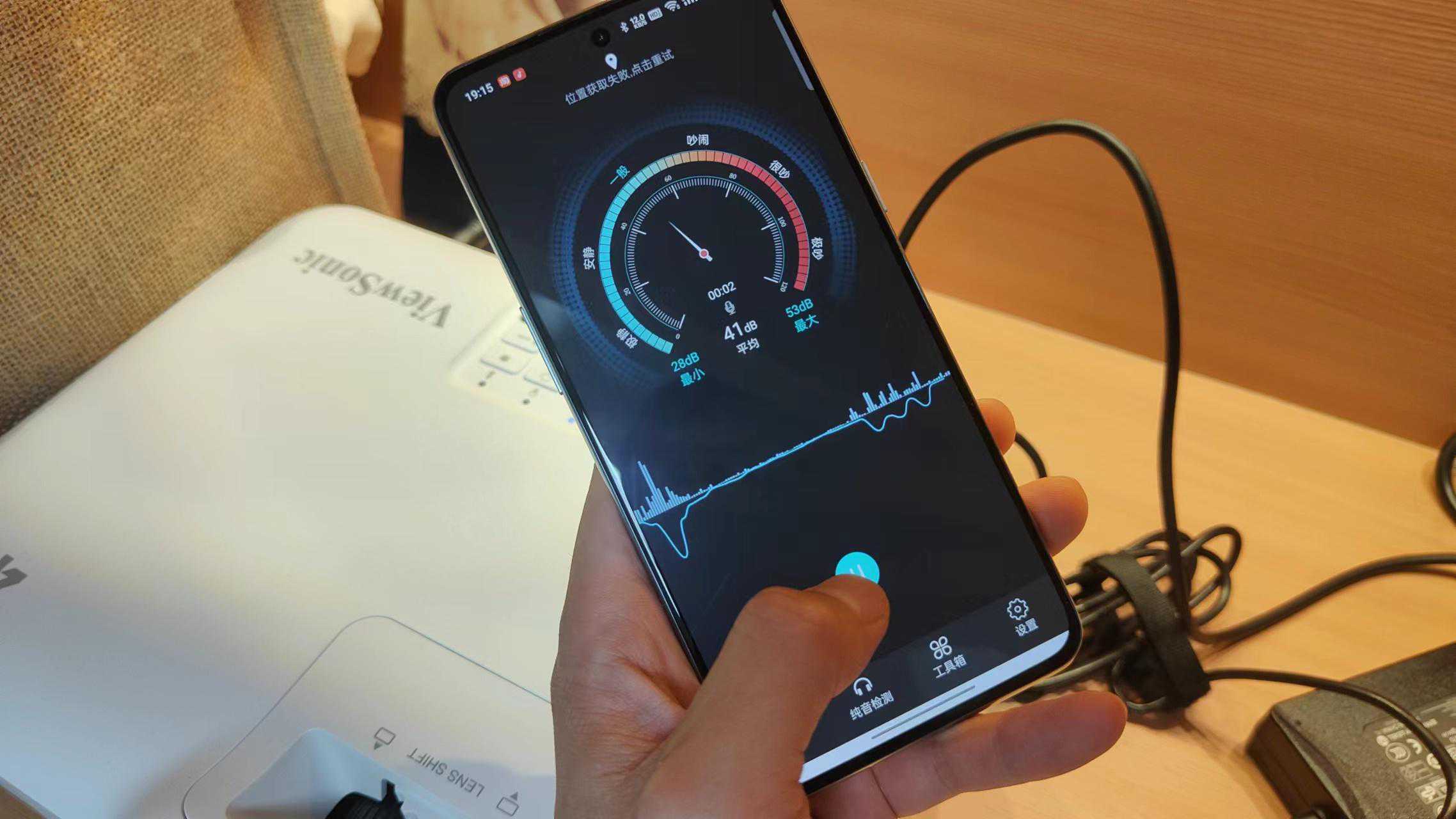 先看下如果我照度计,贴近投影仪的亮度达到了148200Lux,很夸张。而且我播放的还不是纯白色的画面哦~
