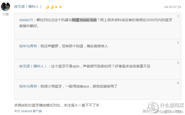 天猫的好评中有部分卖家提及:AUX的效果比蓝牙更好,我判断在蓝牙接收或是解码的部分还有优化空间。蓝牙接收与B1对比过,接收能力没有B1好。但两者价格也不是同一个水平;