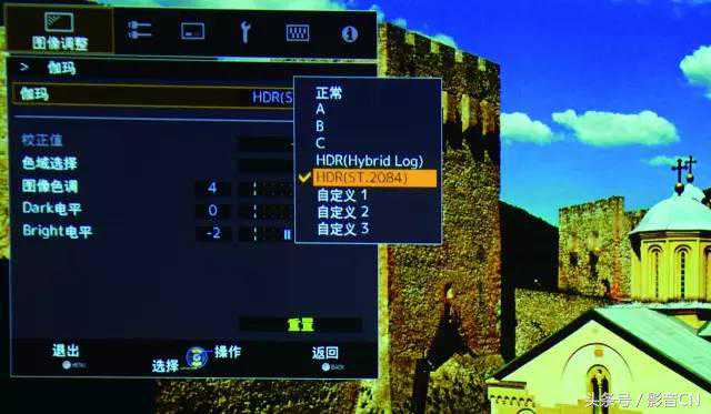 DLA-X5900BC内置的画面调整选项并不算特别丰富,但这款投影机胜就胜在它每个选项可调整的范围都非常广泛。比如它可以选择不同的图像模式,可以对每个图像模式进行包括色彩配置在内的各种细致调整。即便是HDR模式下,它也能够进行各种细致的色彩调整,从而满足用户对不同画面显示效果的需求。另外,这款投影机还支持5组用户预设的镜头记忆,方便用户在不同预设画面之间进行任意切换。