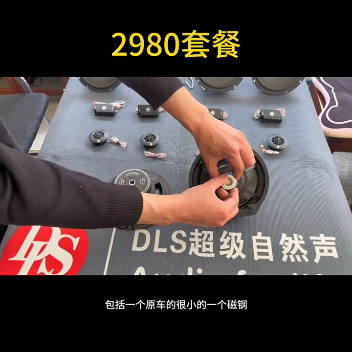 包括很多车可能原车连高音头都不全,所以其实是四个高音头,四个中低音喇叭,还有四个飞频器,一线大品牌DLS,好东西兄弟们,超级自然声。其次用到的隔音也是环保、轻量化,不会增加油耗,不会太阳晒得会留胶发臭,都是好东西。