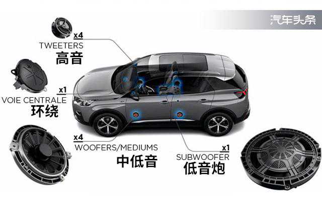这套音响的硬件水平如何呢?4008的座舱里一共分布了10个扬声器,均匀的分布在前、后排,并且在高音单元的位置加入了FOCAL品牌标识,看上去显档次,对于大多数国人来说,FOCAL还算一个小众品牌,能给车主不少炫耀的谈资。