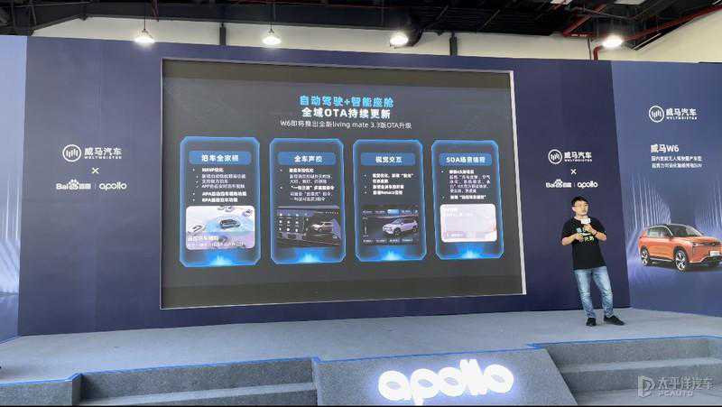 威马W6采用了全新电子电气架构,搭载了7纳米制程的车规级高通8155芯片以及威马汽车自研的自动驾驶域控制器,借助百度Apollo平台的百万级云算力,威马W6在感知力、智能化、自我进化力三方面达到了新高度。