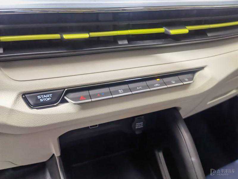 进入车内,中控屏更大更宽了,把之前两个空调出风口“挤”到了屏幕下方,原本在屏幕下方的一组按键被融入触碰控制里面。