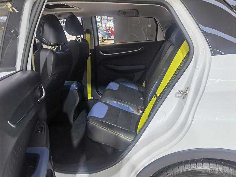 新车内饰采用了悬浮式中控屏设计,加上蓝黑双色的配色拼接,以及荧光黄色的装饰条和安全带,营造出精致、高级的质感。