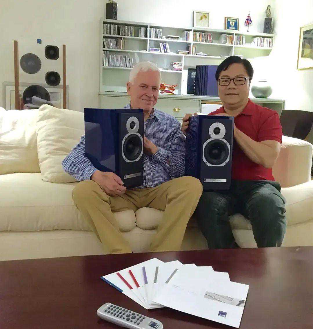 力高音响十多年来一直代理英国ATC音箱,彼此建立紧密合作关系,图为刘老板与已故ATC创办人BillyWoodmen合影