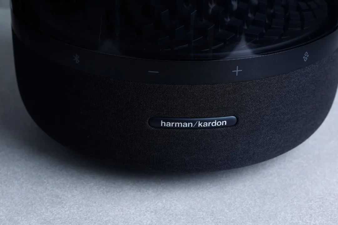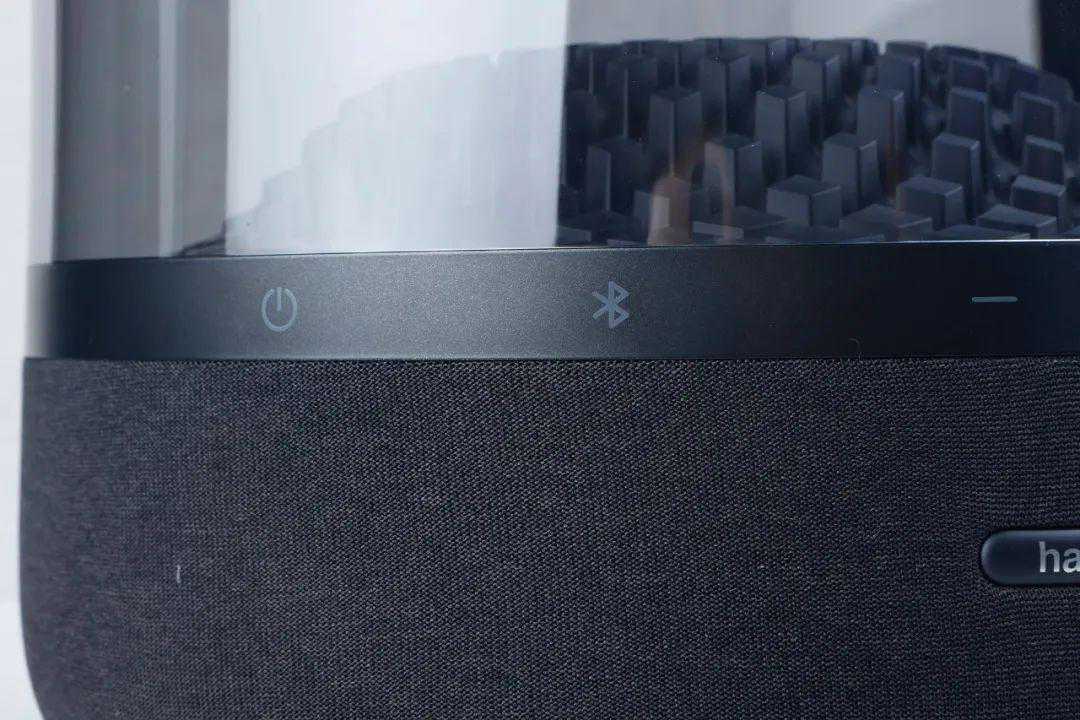 看过harman/kardon音乐琉璃系列的人应该都对它的透明水母外观有着深刻印象,音乐琉璃四代传承了这一家族经典设计。剔透的“水母罩”并非纯粹透明,而是呈现出灰黑色,配合下部包裹的黑色织物面料,既保持了音箱整体的暗色调风格,又通过不同材质的组合形成了丰富的视觉层次,光是放在那里,质感就已满溢。