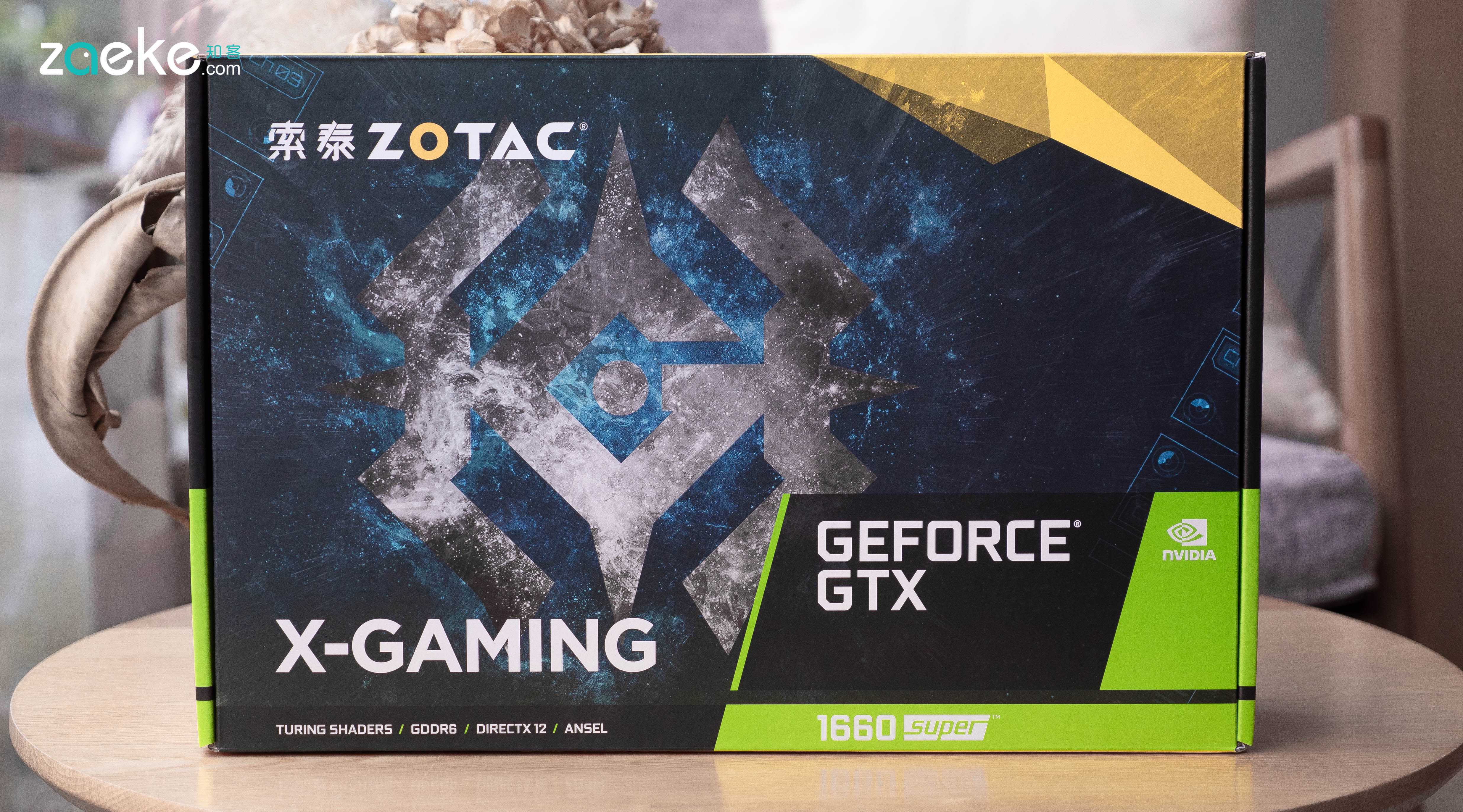 这次知客拿到的测试卡是索泰的GTX1660SuperX-GAMING,这张卡在索泰目前推出1660Super显卡里是定位较高的产品,采用3风扇2热管设计。同品牌同芯片还有个叫做“毁灭者”的版本,使用的是2风扇2热管散热。在目前市面上发售的1660Super显卡中,索泰的这张X-GAMING也比较高阶。