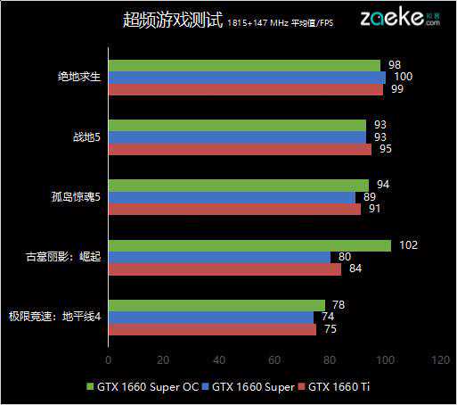 测试结果有点出乎意料?我们也这么认为。在有稳定测试场景的《孤岛惊魂5》与《极限竞速:地平线4》里面,超频后的1660Super获得了和理论测试类似的性能提升。至于同样有稳定测试场景,可部分场景里面成绩异常偏高的《古墓丽影:崛起》,我们就没法很好地解释。另外的《PUBG》和《战地5》则可能是因为手动测试的误差原因,并没有获得我们预期的结果。