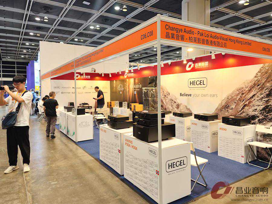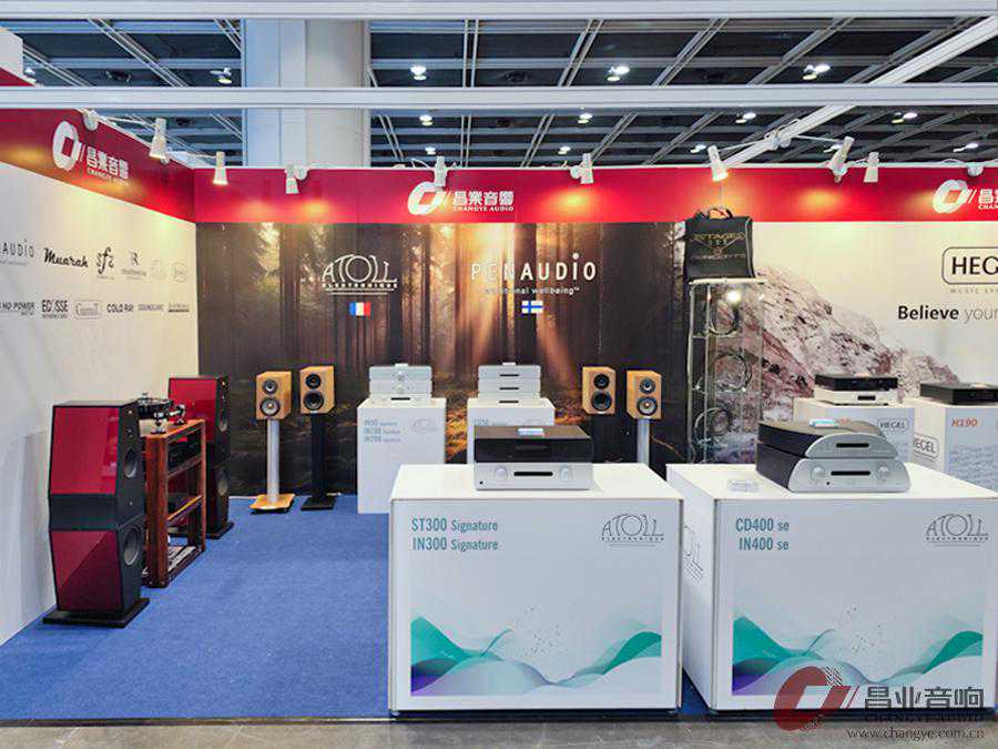 昌业展位位于三层C6-C8展位,主打挪威HEGEL(音响哲学)、法国ATOLL(珊瑚礁)、芬兰PENAUDIO(名品)、意大利RF(菲伦蒂诺)、美国StageIIIConcepts(银圣)以及全新代理的波兰模拟产品品牌MUARAH,静态展示为主。