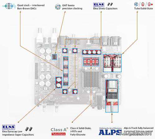 ProiDSD不仅提供多元的数位输入方式,在模拟电路上更提供了多元的运作方式的运作方式。模拟音讯在离开DAC电路之后,会进入离散元件堆砌而成的三阶模拟滤波电路过滤掉自DAC电路输出的高频杂讯。在前级电路上,ProiDSD采纯模拟音控的设计,使用大名鼎鼎的Alps100KBx6六轨式音量控制器,其中两轨电路负责左声道的正负极讯号,另外两轨电路处理右声道的正负极讯号,藉此让ProiDSD不论在任何音量下,都可以传达平衡、低失真的声音表现。