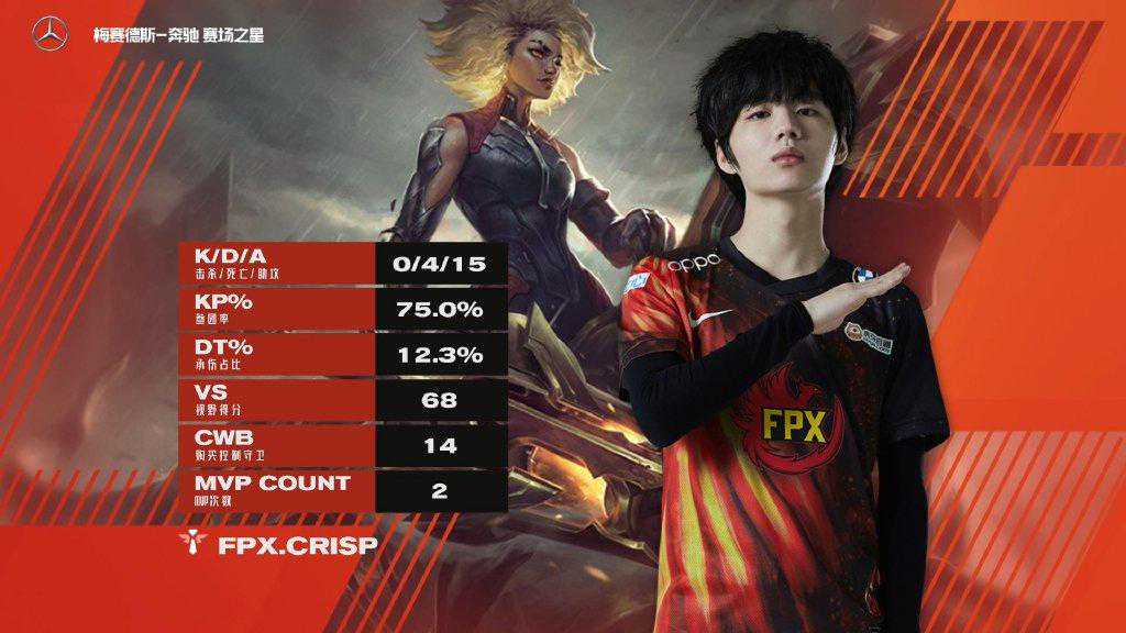 而在团战中,Crisp的芮尔在几次先手开团都非常果断,这也是FPX能够顺利拿下团战胜利的关键,也是FPX获胜的最大功臣。这也难怪众位解说在本场比赛之后,纷纷盛赞刘青松的出彩表现,解说雨童更是感慨这是最近见过最猛的芮尔了!